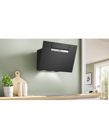 Cappa inclinata con motore Eco Silence Drive™ e sistema automatico Smart Hood Automatic, che elimina automaticamente i cattivi odori e i rumori in cucina.