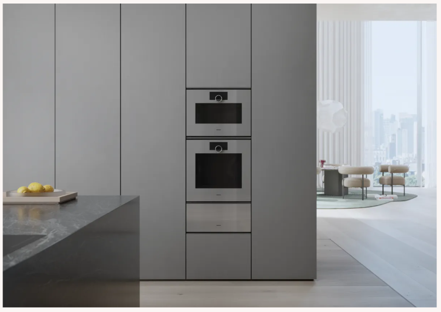 Forno da incasso con manopola di controllo digitale e display TFT touch, funzione assistenza pasti, Air Fry, sonda per carne, Home Connect per gestione tramite app.