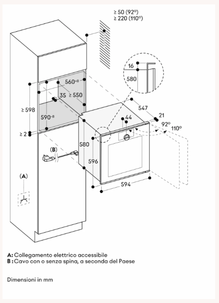 La presa di corrente deve essere accessibile e situata all’esterno della nicchia da incasso.