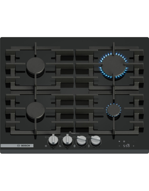 Piano cottura a gas con controllo preciso della fiamma, gestione intelligente dei fuochi e pulizia semplice grazie alle manopole removibili e ai supporti in ghisa lavabili in lavastoviglie.
