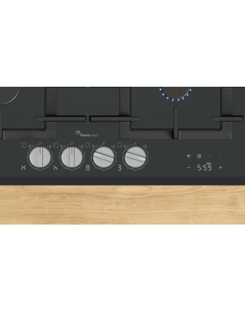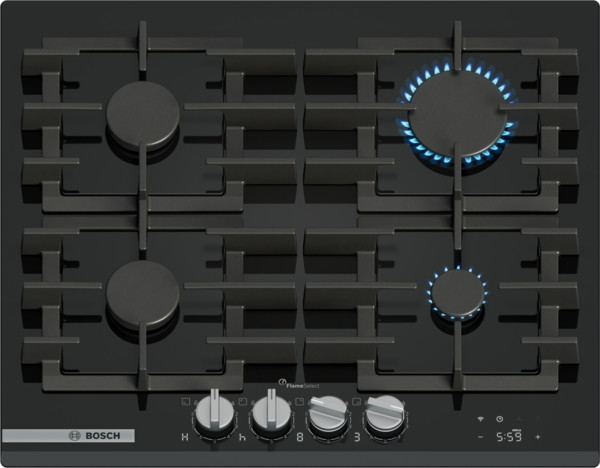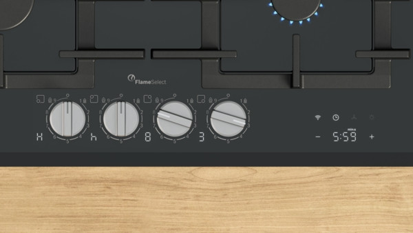 Piano cottura a gas con regolazione precisa della fiamma, gestione intelligente e facile da pulire grazie alle manopole in metallo removibili e alle griglie in ghisa lavabili in lavastoviglie.